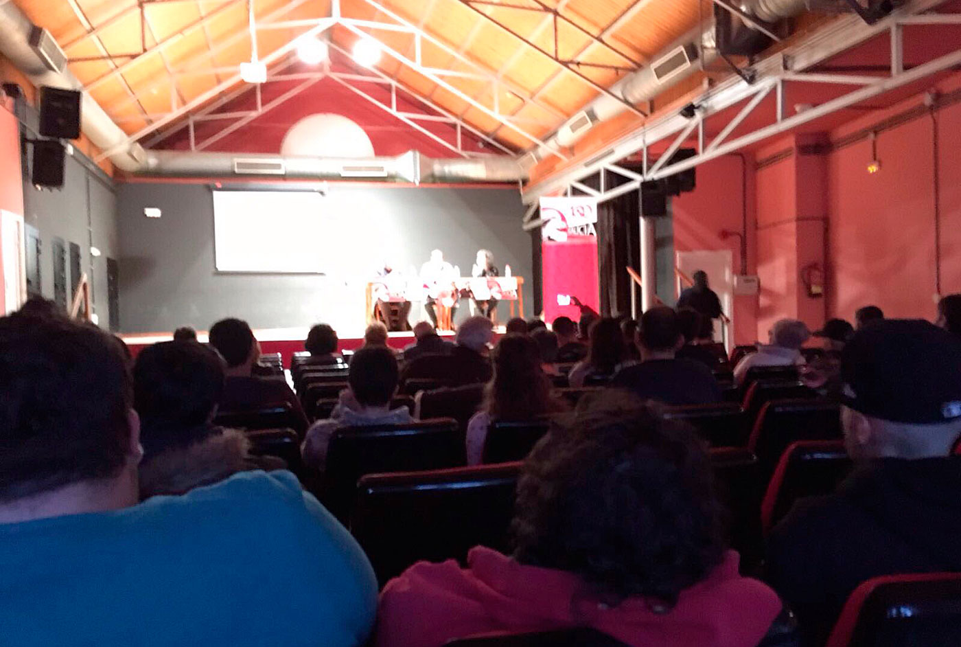 Parte del público asistente durante las intervenciones de la mesa en el salón-teatro de las Torres de Santa Cruz de Oleiros.