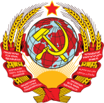 Artículo 70. El escudo de la URSS se compone de una hoz y un martillo sobre un globo terráqueo iluminado por los rayos del sol y rodeado de espigas. Las espigas rodean el globo y tienen cintas entrelazadas, con inscripciones en las seis lenguas mencionadas en el artículo 34, con la frase: “Proletarios de todos los países, uníos”. Sobre el escudo se sitúa una estrella de cinco puntas.